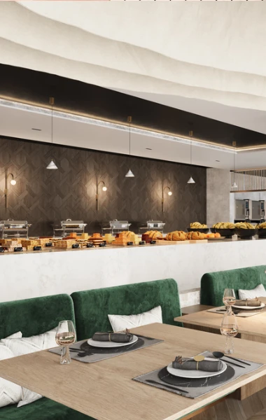 18:00 órátólAz esti órákban az Admiral Étterem nemzetközi és helyi inspirációkra épülő büfévacsorával várja a vendégeket. Az önkiszolgáló rendszer szabadságot ad, miközben a kínálat tudatosan strukturált: hideg és meleg előételek, saláták, lassan sült húsok, friss halfélék és kreatív vegetáriánus fogások váltják egymást. A látványkonyha az étterem szíve – a grillen készülő ételek illata és a friss tálalás az estét valódi eseménnyé teszi.